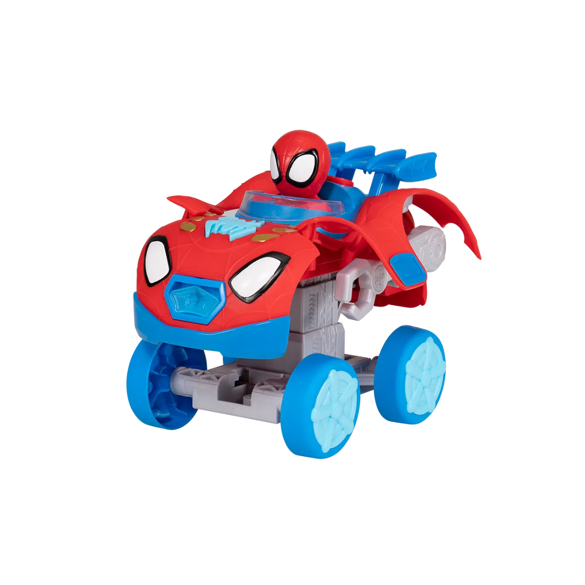 Este vehículo de 20 centímetros se transforma del veloz Web Crawler de Spidey en un Spidey Mech. Empujá hacia abajo la cabeza de Spidey para comenzar la transformación.