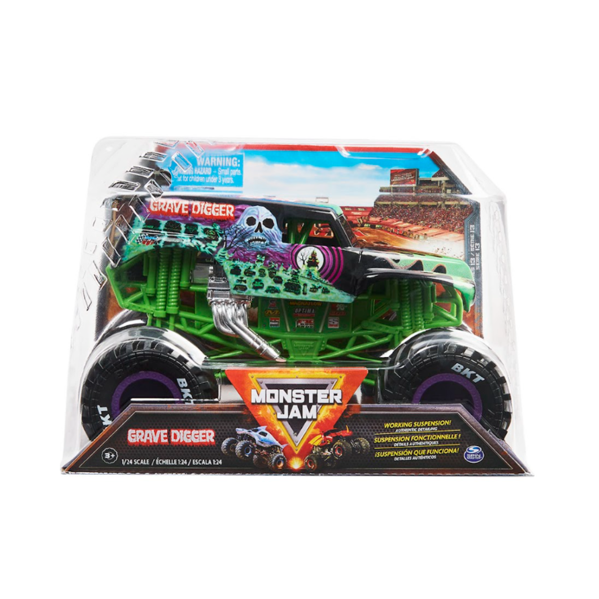 Monster Jam te permite crear tu propias acrobacias épicas. Con impresionantes detalles esta figura a escala 1:24 es una autentica repica. Los neumáticos de goma BKT brindan una mayor tracción.
