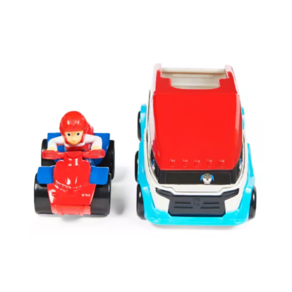 Simplemente baja la rampa de carga en la parte trasera, luego conduci el atv de Ryder directamente por la rampa hacia el vehículo. Cerra la rampa, luego podes ir de una emocionante misión de rescate a otra