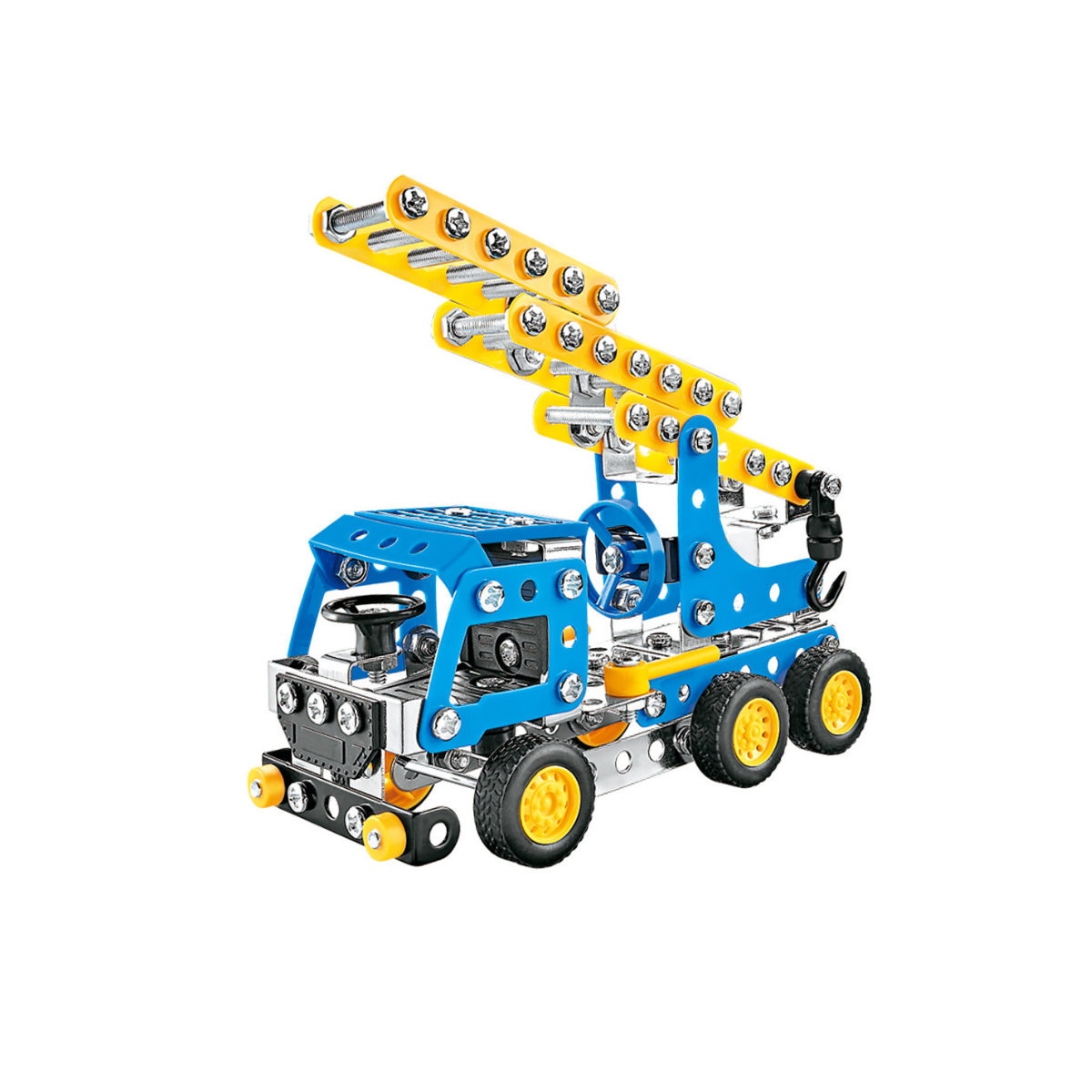 La caja incluye todas las piezas necesarias, una llave y un destornillador para que armes tu propio vehículo. Una vez ensamblado, está listo para jugar. ¿Lo mejor? ¡Podes armarlo y desarmarlo todas las veces que quieras!