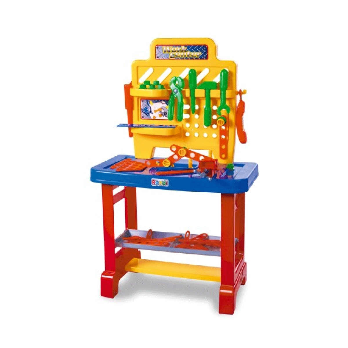 Work Center es un banco de trabajo con varidad de herramientas y accesorios. En el estante inferior podrán almacenar las piezas terminadas y en el tablero colgar las herramientas y el teléfono.